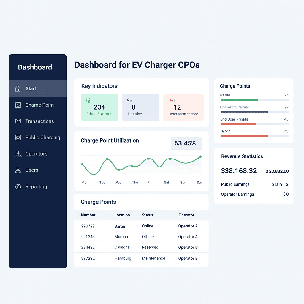 Built to manage distributed charging infrastructure with centralized control, real-time visibility, and scalable architecture.